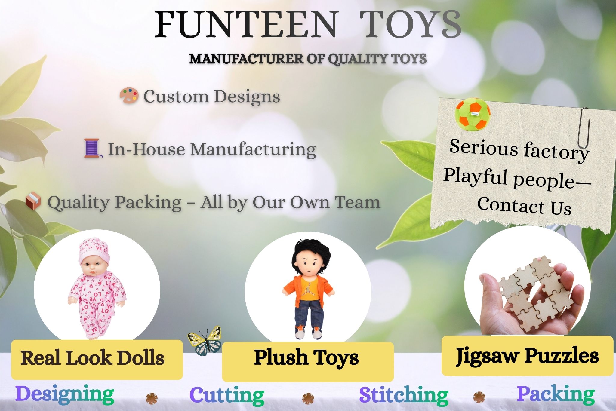 At Funteen, we design and manufacture puzzles, real look dolls, plush toys, and kids’ soft furnishings that help children learn, imagine, and grow—without ever feeling like a lesson.